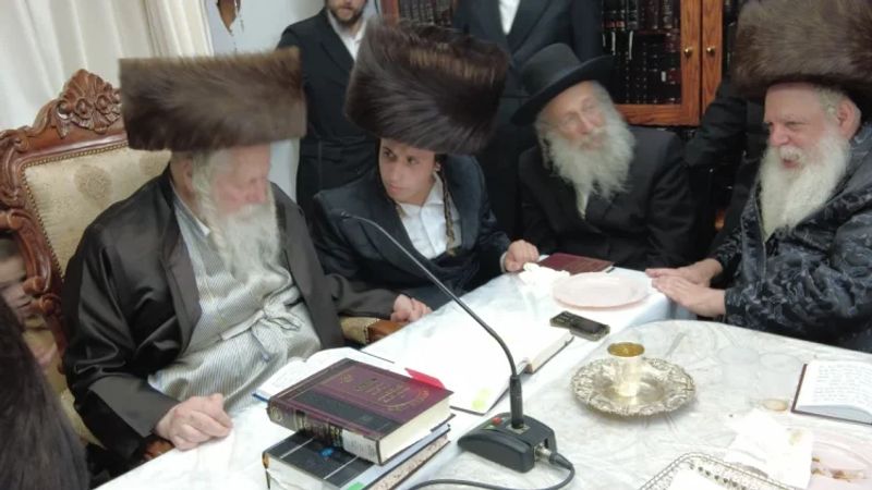 This week on Monday, the 10th of Tammuz, the celebration of the final Sheva Brachot for the great-grandson of Moreinu HaRav Eliezer Berland shlitâa was held. The groom, Shimon, is the son of Rabbi Nachman Triesman shlitâa, son-in-law of the Zucker family. The bride is the daughter of Rabbi Yitzchak Halperin shlitâa, a lecturer at the Chochma V'Daat Yeshiva and son-in-law of Rabbi Michael Gol shlitâa, Rosh Yeshiva of the Magenei Eretz Yeshiva.