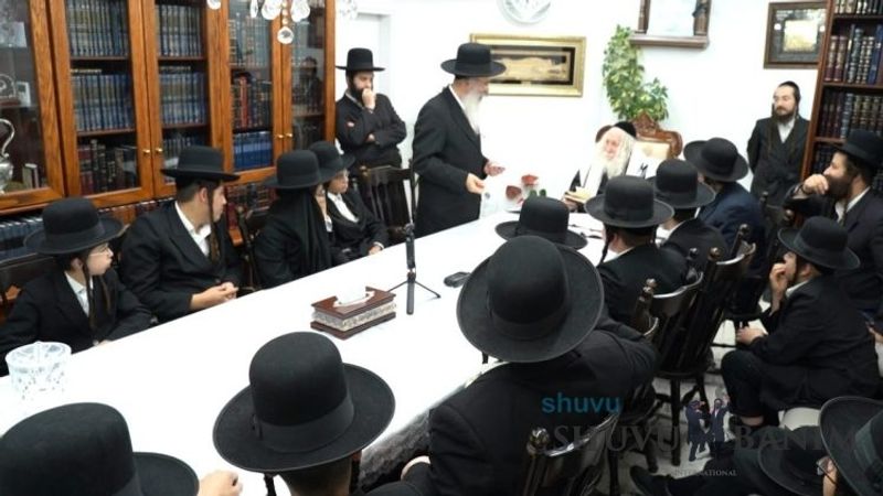 Tenth-grade bachurim at “Yeshivat Breslov – Chochmah V’Daat,” who toiled and dedicated themselves to learning and knowing thoroughly Tractate Kiddushin during the month of Elul and the beginning of winter, merited to come to Rav Berland’s holy home to be tested in the presence of the Rav shlit”a, and received a shiur of holy fire from his holy lips last Tuesday, 22 Kislev, Parshat Vayeshev. Upon the Rav’s entrance, dean Rav Itmar Rafael shlit”a and principal Rav Avraham Mordechai Ahlag shlit”a tested the bachurim on the material they had learned. The students responded eloquently to all questions and even added insights of their own that were not directly asked in the debates in the holy Gemara. After the examination, Moreinu HaRav shlit”a gave a shiur to the bachurim. At the beginning of his words, he discussed Tractate Yoma, primarily Daf 29 which discusses the question of why the miracle of Esther was written in a Megilah (scroll), but the events of Hanukah were not. Afterwards, he spoke about David’s desire to conquer Rome in order to prevent the destruction of the Temple. Within his discourse, the Rav shlit”a encouraged the students in a number of subjects, amongst them to read Tehilim during breaks, and to learn the weekly parasha with Rashi. Afterwards he spoke about how when Eliezer went to make the match with Rivka, he saw “V’kada Al Shichmah – and a jug on her shoulder,” the initial letters of which are “ESaV,” and didn’t understand how this could be [that the wicked Esav would descend from the righteous Rivka]. The Rav brought the words of the “Imrei Noam” that in the merit of his being silent, Eliezer merited to see that Esav was just a husk of Yaakov, because “Machrish – to be silent” is the numerical value of “Esav Yaakov.” The Rav encouraged learning Likutey Moharan, but said that without Gemara it’s impossible to understand anything in Likutey Moharan. Also the Rav encouraged immersing in a mikveh with alacrity and not to rise later than six in the morning. He also said that a bachur needs to start looking for a match early and to marry immediately at the age of eighteen. After these words, he discussed stories of the Hanukkah miracle and spoke about Shimon and Levi’s killing of the people of Shechem, bringing the question of the Ramban – why didn’t Yaakov himself immediately free Dinah from the hands of Shechem. Towards the end of the shiur, he returned to the question of why the miracles of Hanukah were not written and said that with Megilat Esther, every letter was written with Divine inspiration; however, with Hanukah, there already was no Divine inspiration, because it disappeared during the days of Zechariah the prophet. Towards the end of the shiur, the Rav once again encouraged the bachurim to devote themselves to Gemara learning, and to make the most of their time as youth to learn as much Gemara as possible.