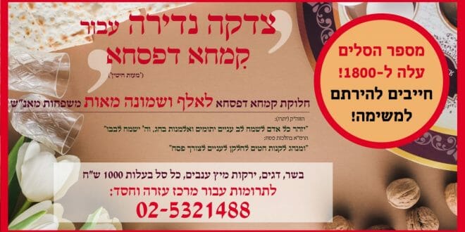 להעברת ה'קמחא דפסחא' המהודרת לחצו כאן