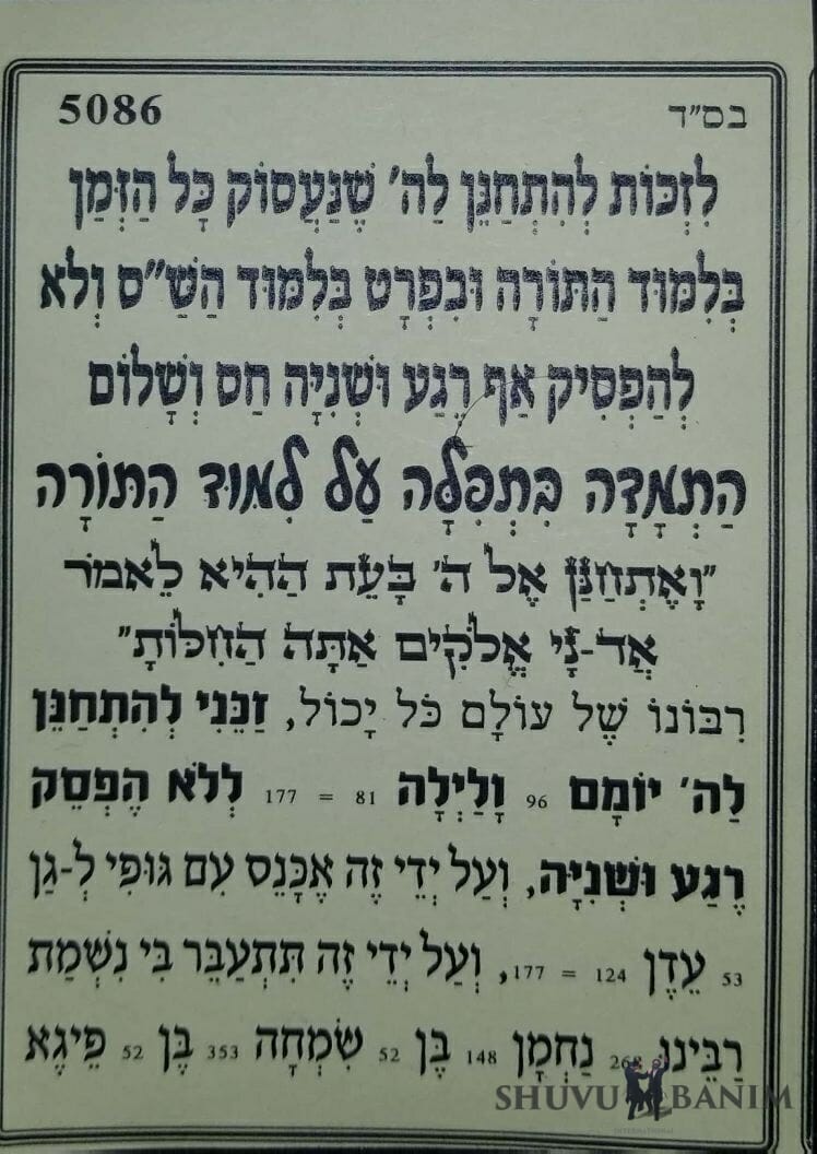 תפילות נפלאות מפרי עטו של הגה"צ הרב אליעזר ברלנד שליט"א לט"ו באב שבת נחמו פרשת ואתחנן תשע"ט