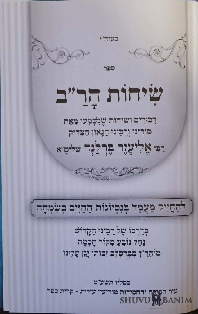 הספר "שיחות הרב" – דיבורים ושיחות קצרות להחזיק מעמד בנסיונות החיים בשמחה בדרך רבינו הקדוש מוהר"ן מברסלב זיע"א – מאת כ"ק הגה"צ הרב אליעזר ברלנד שליט"א