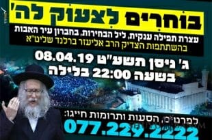 קרא עוד >בוחרים לצעוק לה' – עצרת תפילה ענקית בליל הבחירות עם הגה"צ הרב אליעזר ברלנד שליט"א