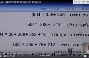 לאחרונה הבאנו באתר את התגליות החדשות של המומחה בצפונות התורה, הרב גלזרסון שליט"א, אודות תהליך הגאולה. בטבלאות התורניות שלו מראה הרב גלזרסון איך דברי הרב ברלנד שליט"א אודות תהליך הגאולה נמצאו באופן נדיר בצפונות התורה. כעת מביא הרב גלזרסון חיבור נוסף הקשור ישירות לנושא הגאולה. אלה דבריו. הרב גלזרסון מצא בצפונות התורה את הגימ' של המילים 'ניצוץ משיח (604), המקבילה …