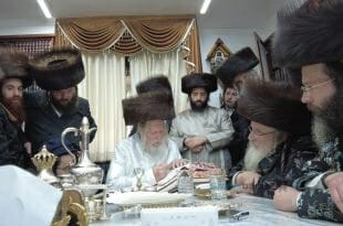 "לְהוֹדִיעַ…" ‏•‏ משתה היין במעון קודשו של הגה"צ רבי אליעזר ברלנד שליט"א בהשתתפות כ"ק האדמו"ר מספינקא שליט"א